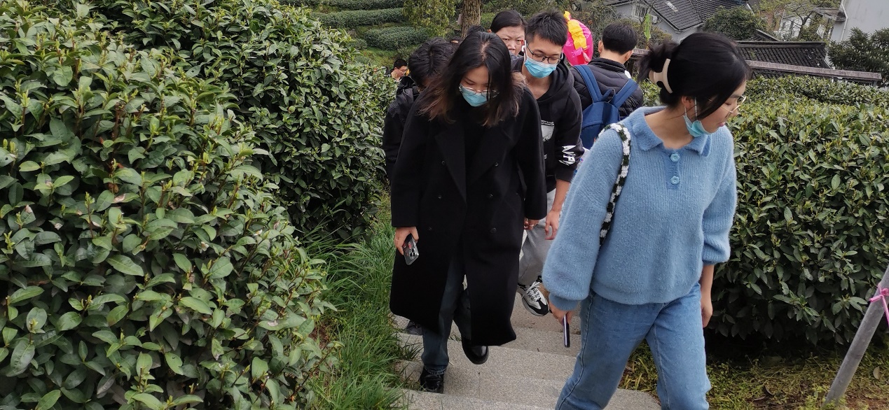 在黄妤婕同学的带领下,同学们参观学习了梅家坞的琅珰岭,并向当地人进行咨询学习。