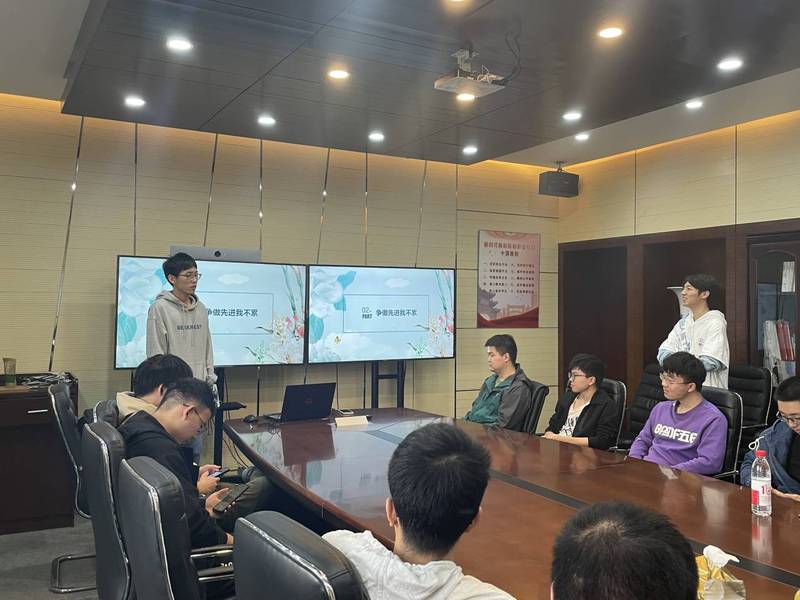 随后,团支部进行了入党积极分子推优工作,崔文博同学上台发言,讲述自己渴望入党的原因,分享个人经历,感谢团支部在其迷茫时的鼓舞与引导,对于积极分子的申请由其余成员进行举手表决,获得全票一致通过。