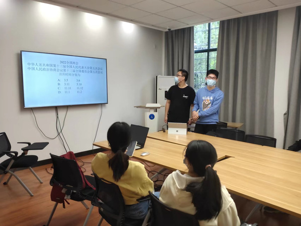为了提高同学们对于疫情相关知识和时事热点的了解,准备了一次答题活动,活动以答题为载体,将普及知识作为主要目的,向同学们普及了疫情方面基本知识、最新两会的相关思想、最近的实事热点,通过穿插有趣的小问题和有趣的小科普,让同学们在答题过程中能够汲取知识的同时,也能感受其中带来的快乐,让较为严肃的答题活动也能充满欢声笑语。