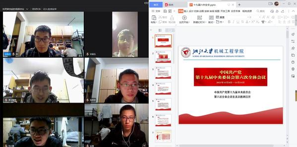 活动的第二部分是同学们针对全会内容进行交流学习,刘灵森同学首先对林昭辉同学提出的机械学子的使命愿景表达了赞同,并提出目前机械工程的前沿领域如智能制造、数字孪生等我国相较西方国家还有较大距离,是我们机械学子未来的努力方向;董泓辉同学认为十九届六中全会的召开是站在“两个百年”奋斗目标的历史交汇点,全面建设社会主义现代国家的新征程已经开启,实现中华民族伟大复兴进入了不可逆转的历史进程,我们应主动担起时代责任,在未来积极投身国家建设;于洋同学认为《决议》中提出的“十个坚持”的宝贵经验,深刻揭示了党和人民事业不断成功的根本保证,也是我们的行动指南。