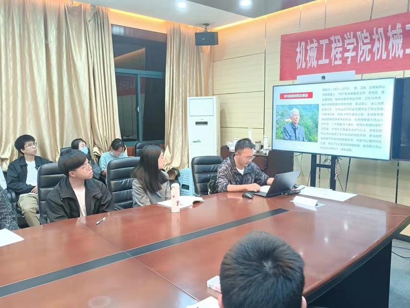 活动的下一个环节是学习杨善洲、袁隆平等人物事迹,石大杭同志向大家介绍了二位先辈的感人事迹,然后带领大家一起观看短片对人物事迹进行学习。