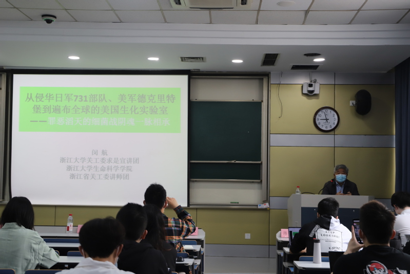 上午9点,浙江大学生命科学学院教授、关工委求是宣讲团闵航老师作《从日军731部队到美国德特里克堡生物实验室》的专题报告,主要向全体积极分子介绍了何为战争中的生物战,并着重讲述了日军侵华期间、美军在朝鲜战争期间、更有如今的德特里克堡采用冷血无情、灭绝人性的生物细菌战。句句如泣如诉,深入人心。铭记血泪历史,铭记屈辱悲壮,才能更好的以史为鉴,支撑我们党继续前行,这也是我们党不断进步、不断前进的立身之本。