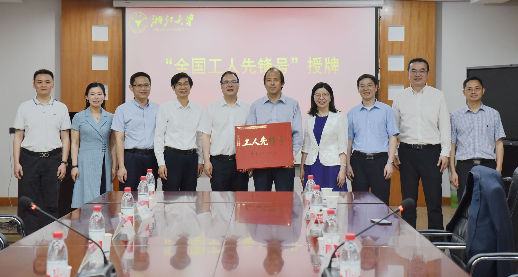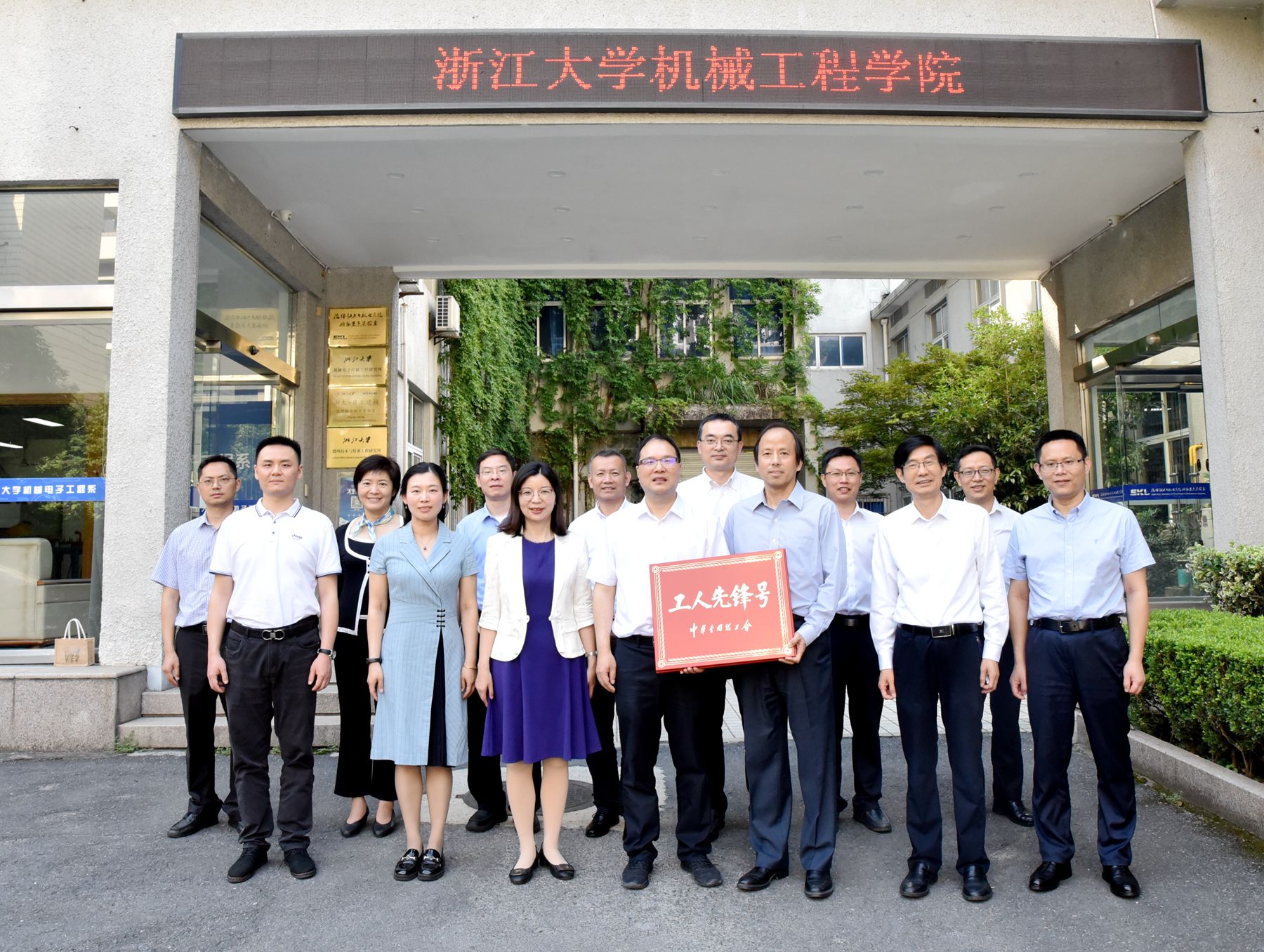 6月8日下午,浙江省总工会二级巡视员、省教育工会主席王玉庆,副主席徐立、李茜和组织建设部部长郑喆等一行4人,在校党委常委、统战部部长、工会主席楼成礼,校工会副主席李民、党颖等人的陪同下,来到浙江大学玉泉校区为“全国工人先锋号”获得者机械工程学院机电液重大装备教师团队授牌。机械工程学院院长杨华勇院士、党委书记项淑芳、常务副院长居冰峰、党委副书记俞磊、流体动力与机电系统国家重点实验室主任徐兵等参加授牌仪式。
