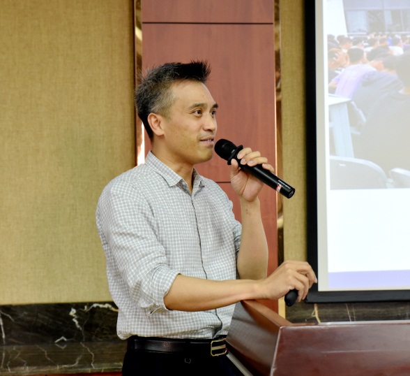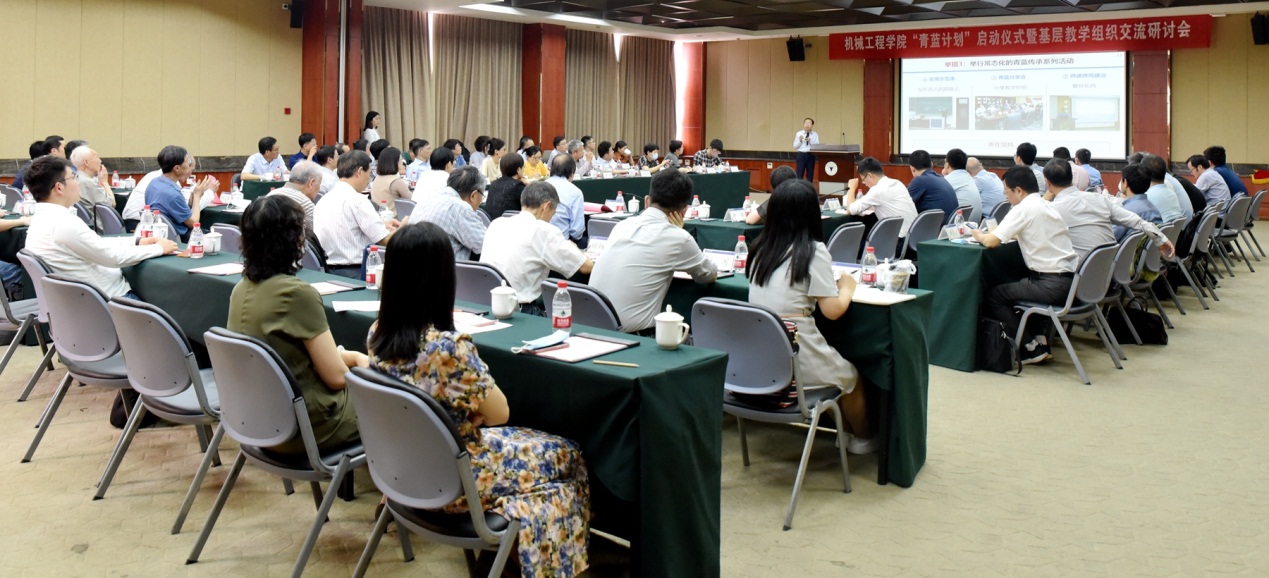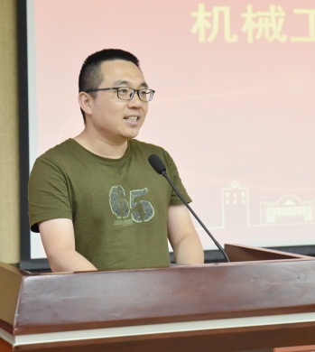 机械工程学院副院长刘振宇汇报机械工程学院教育教学基本情况与“青蓝计划”活动筹备情况。他以视频短片《百十机械铸重器,青蓝相承育新人》从本科专业建设、课程建设、教材建设、毕业设计模式、创新实践活动、国际化交流和教学思政等方面全面介绍了学院教育教学改革基本情况,从青蓝计划的缘起、内涵和举措三方面详细汇报了“青蓝计划”活动的筹备情况。