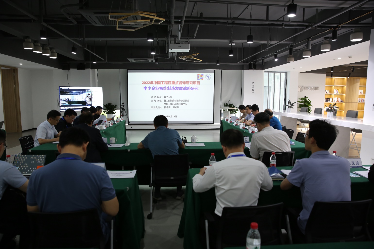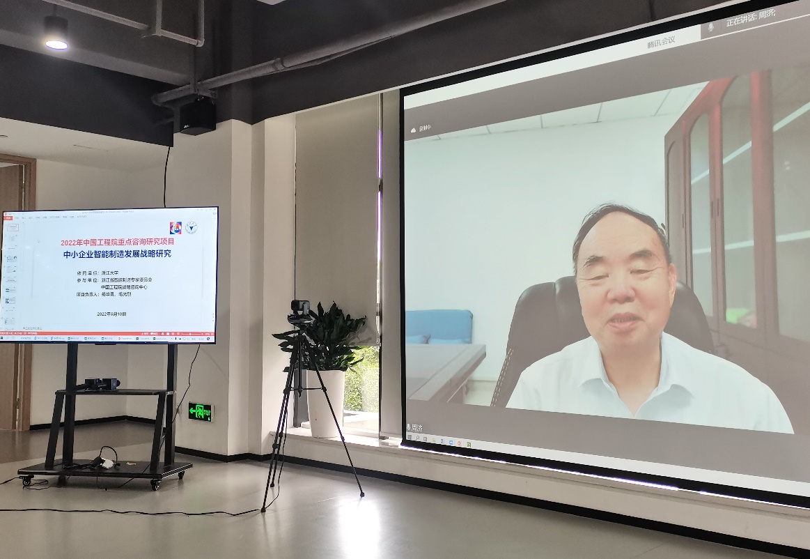 会上,杨华勇院士代表项目组介绍了项目背景与研究思路,毛光烈主任、徐高春副主任介绍了浙江省智能制造专家委员会服务中小企业智能制造的情况,谢海波教授介绍了浙江大学高端装备研究院服务中小企业智能制造的情况。与会专家就中小企业智能制造转型案例、产品智能化、专精特新小巨人、中小企业智能化转型国际经验、智能制造人才培养、政策建议等问题进行了交流讨论,对项目研究方案提出了意见和建议。