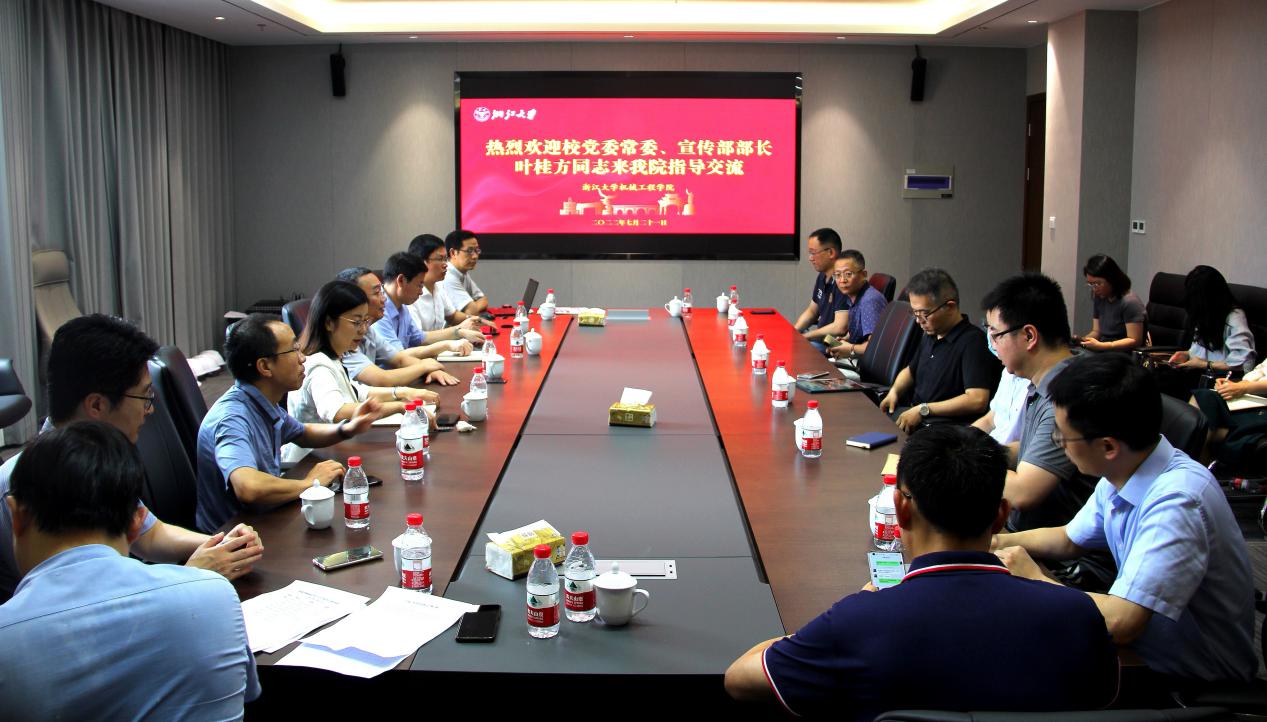 为进一步引导学院教师深刻认识使命愿景,心怀“国之大者”,奋力“走在前列”,2022年7月21日上午,机械工程学院党委理论学习中心组扩大学习会议暨第22期青年教师发展论坛在紫金港校区西区开物苑1幢302会议室举行。浙江大学党委常委、宣传部部长叶桂方受邀参会,并为全体人员做专题培训。学院党委书记项淑芳、常务副院长居冰峰等党政班子成员和学院20余名教师代表参会。