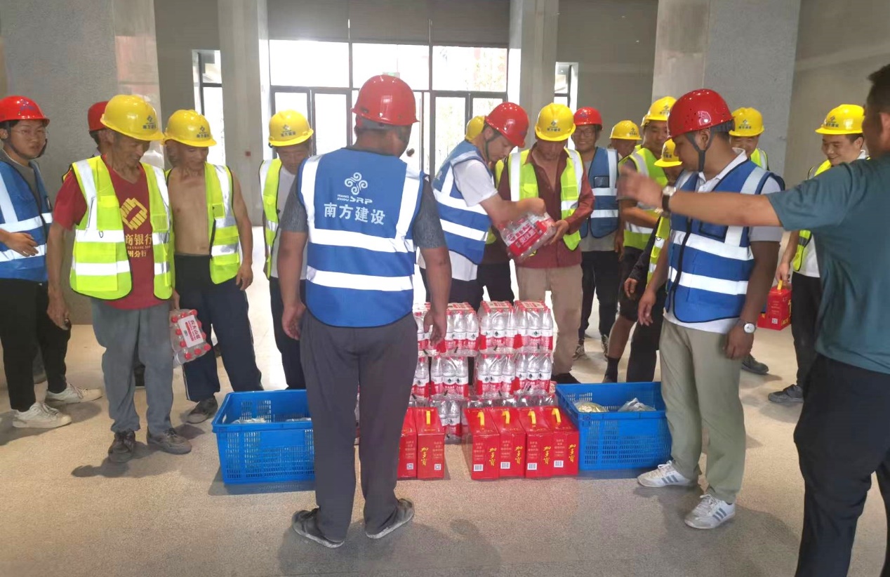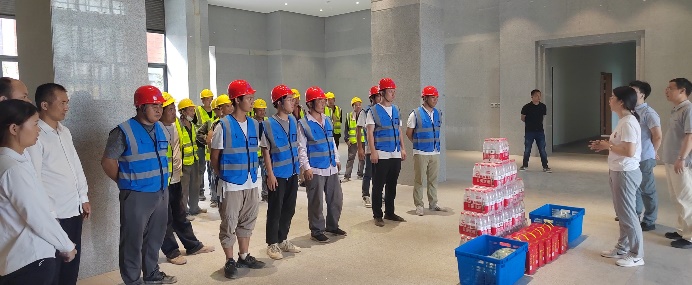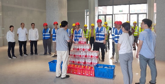 为了切实贯彻落实好学校关于理工农组团搬迁工作指示精神,加快推进机械大楼装修工作开展,确保学院在新学期能够顺利入驻新大楼,尽管近期烈日炎炎、热浪袭人,但学院新大楼装修施工项目如火如荼进行,工作人员头顶烈日、挥汗如雨,高效有序地推进各项工作。项淑芳、居冰峰等对高温下奋战在一线的工作人员表示慰问,送上了凉茶、西瓜、饮用水等防暑物品,同时,叮嘱大家要劳逸结合,注意防暑降温、保重身体,叮嘱施工班组,坚持“以人为本、安全第一”理念,科学规范施工、切实保证安全,统筹做好疫情防控工作,圆满完成此次施工任务。