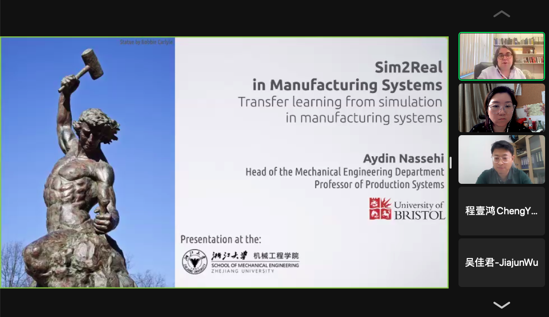 2022年7月8日,应浙江大学机械工程学院邀请,英国布里斯托大学Aydin Nassehi教授为我院师生带来了一场精彩的线上学术报告会,主题为“Transfer Learning from Simulations in Production Systems”。报告会由我院彭涛副教授主持,来自浙江大学、华中科技大学、重庆大学等高校130余名师生线上参加。