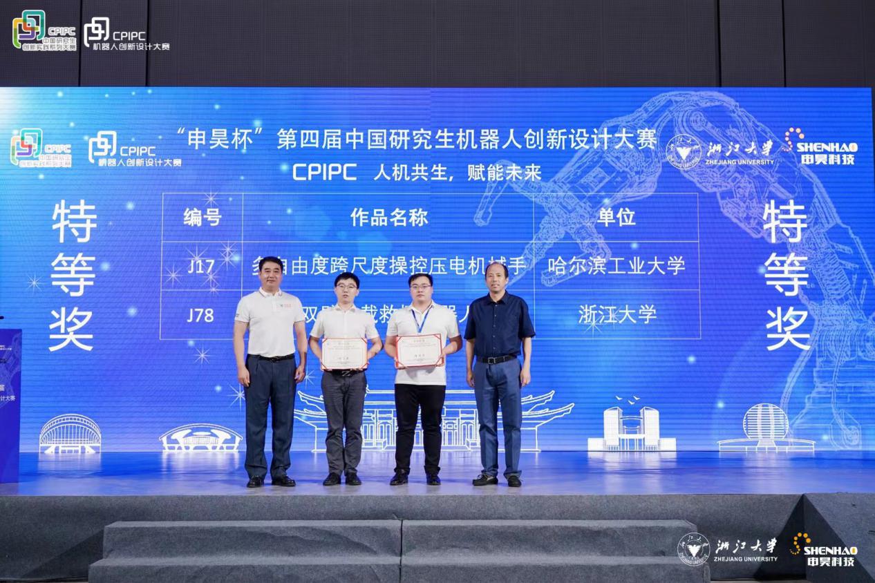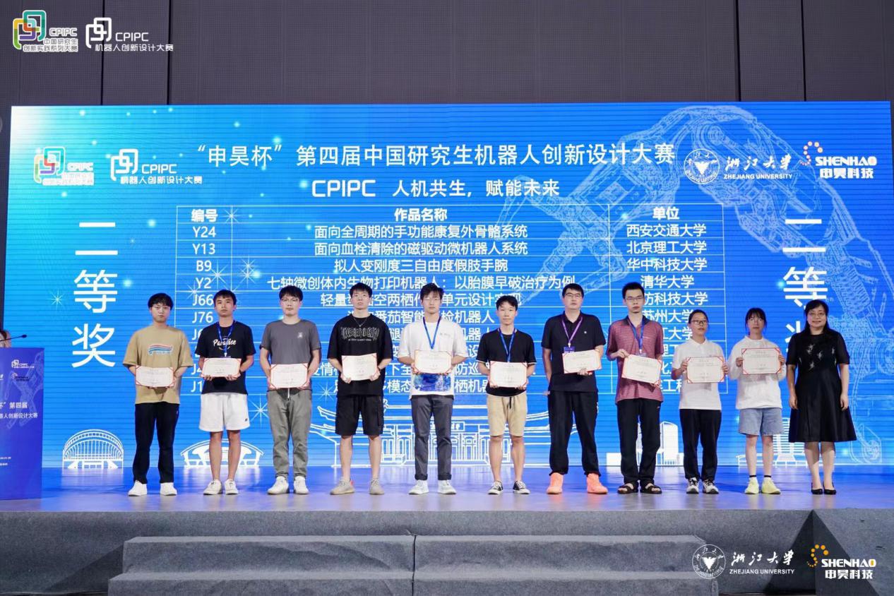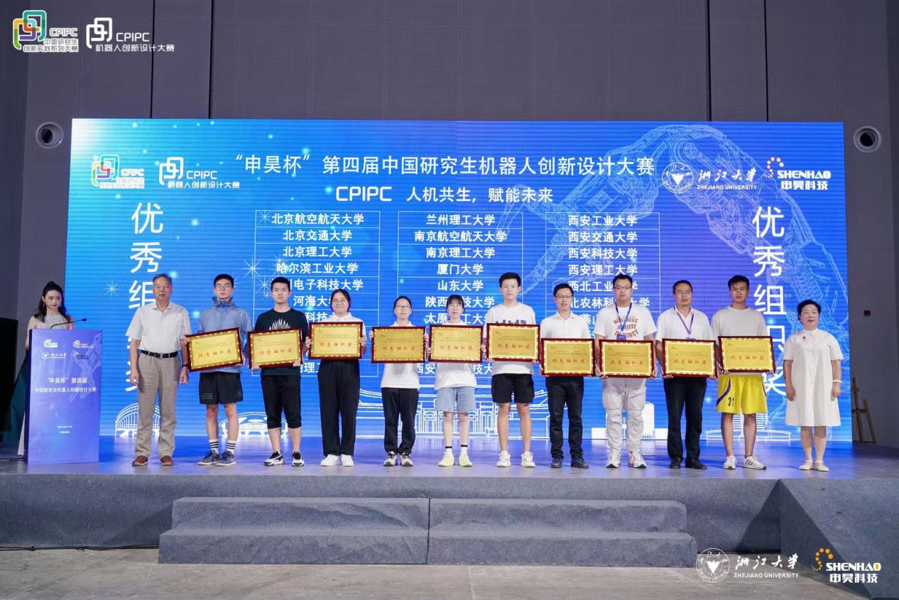 2022年8月25日-26日,第四届“申昊杯”中国研究生机器人创新设计大赛在杭州运河文化发布中心顺利举行。比赛由教育部学位管理与研究生教育司指导,中国学位与研究生教育学会、中国科协青少年科技中心主办,中国机械工程学会机器人分会、中国人工智能学会智能机器人专业委员会、中国宇航学会机器人专业委员会、中国自动化学会机器人专业委员会联合主办,浙江大学承办,浙江大学机械工程学院、流体动力与机电系统国家重点实验室、国家电液控制工程技术研究中心提供技术支持,杭州申昊科技股份有限公司提供赞助支持。为落实疫情防控要求,本次大赛采用线下及线上相结合的方式举行。来自全国174所高校的833支队伍展开了精彩的角逐,共有88所高校和科研院所的201支队伍脱颖而出,经作品现场评审、答辩评审和特等奖答辩评审等环节,确定评选出2支队伍获特等奖、15支队伍获一等奖、30支队伍获二等奖。