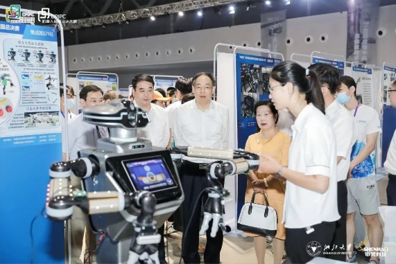 26日晚,大赛闭幕式暨颁奖典礼在发布大厅举行。中国工程院院士、浙江大学工学部主任杨华勇,中国学位与研究生教育学会副会长、浙江大学发展委员会副主席陈子辰,中国学位与研究生教育学会副会长、中国科学技术大学原副校长张淑林,大赛组委会秘书长、哈尔滨工业大学研究生院培养处副处长刘冰峰,大赛组委会委员、哈尔滨工业大学机电工程学院副院长闫纪红,申昊科技董事长陈如申、总经理黎勇跃,浙江大学研究生招生处处长周文文,校党委研究生工作部副部长刘波,浙江大学机械工程学院党委书记、副院长项淑芳,学院常务副院长、党委副书记居冰峰和湖南大学有关领导,业界专家、企业代表、大赛参赛师生、产业伙伴、新闻媒体朋友等参会。