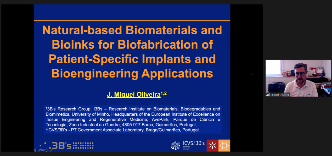 2022年8月26日,应浙江大学机械工程学院邀请,Bio-Design and Manufacturing期刊编委,葡萄牙米尼奥大学Prof. J. Miguel Oliveira为我院师生举行了一场线上学术报告会,主题为“Natural-based Biomaterials and Bioinks for Biofabrication of Patient-Specific Implants and Bioengineering Application”。报告会由我院马梁副教授主持,我院一百一十余名师生线上参加。