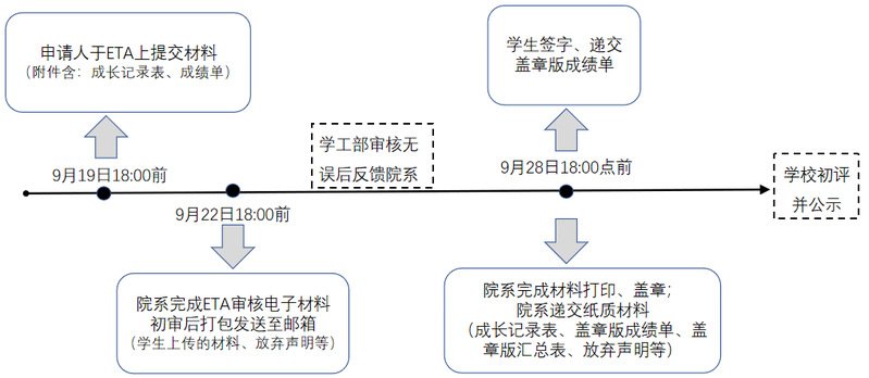 3.反馈材料:工作人员审核材料并联系有误学生修改,无误后会将上述材料打包发回院系,院系打印后将在9月28日18:00前通知学生至开物苑1幢409签字。