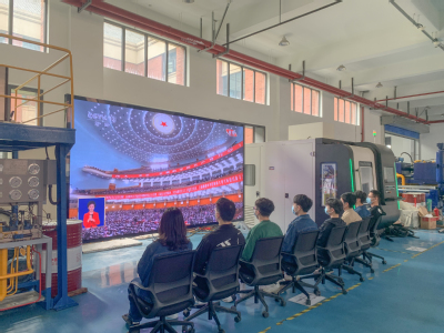 浙江大学工学部主任、中国工程院院士杨华勇教授,机械工程学院常务副院长居冰峰教授,副院长刘振宇教授,副院长赵朋教授,党委副书记俞磊老师,副院长杨赓教授,学院党委委员徐兵教授等院领导及院团委书记金娟霞老师,团委副书记刘炳瑞老师,陈宇烽老师与部分学生代表分别在开物苑1-306、学院实验车间共同观看学习了大会开幕及习近平总书记重要报告。