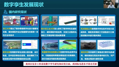 在数字孪生发展现状部分,胡教授介绍了该领域的国内外研究现状及目前面临的三大问题并鼓励同学们在该领域加强深耕。