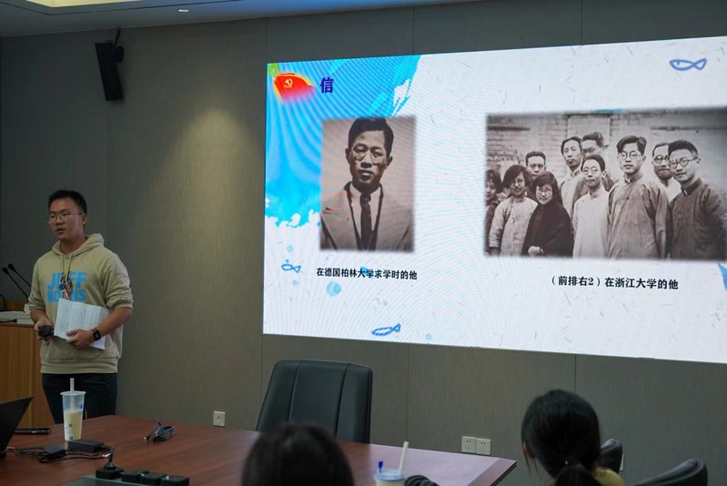 在介绍完毕后,石大杭进行了微党课《信》分享,以信为线索,带领我们进一步了解王淦昌的重要事迹,也使我们对微党课的形式与内容有了更深地理解。最后,骨干团成员进行了简短的讨论,并集体参观了马兰展厅。