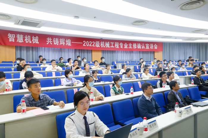 本次宣讲会首先由刘振宇老师做学院介绍及机械工程专业介绍。刘老师以“选择浙大机械 共铸人生辉煌” 主题,用选择浙大机械的八大理由简明扼要介绍了机械工程专业的优势以及浙江大学机械工程学院的优势。刘振宇老师用富有感染力的演讲激起了22级本科新生对机械工程专业学习的热情,对浙江大学特色培养机械工程专业人才教育的憧憬。