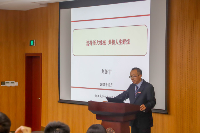 本次宣讲会首先由刘振宇老师做学院介绍及机械工程专业介绍。刘老师以“选择浙大机械 共铸人生辉煌” 主题,用选择浙大机械的八大理由简明扼要介绍了机械工程专业的优势以及浙江大学机械工程学院的优势。刘振宇老师用富有感染力的演讲激起了22级本科新生对机械工程专业学习的热情,对浙江大学特色培养机械工程专业人才教育的憧憬。