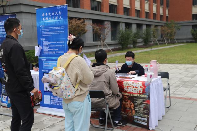 招聘会现场,招聘单位通过展示宣传海报、派发宣传册以及面对面交流等形式耐心向同学们介绍公司概况、行业前景、职业发展方向、人员需求等。单位包括浙江晶盛机电股份有限公司、杭州申昊科技股份有限公司、浙江极氪智能科技有限公司、圣奥集团有限公司、杭州景业智能科技股份有限公司、山东临工工程机械有限公司、泰瑞机器股份有限公司、杭州智元研究院有限公司、杭州云箭智融信息技术有限公司、浙江中控技术股份有限公司、杭州三花微通道换热器有限公司、杭州天扬机械有限公司、浙江启尔机电技术有限公司、湘潭钢铁集团有限公司。
