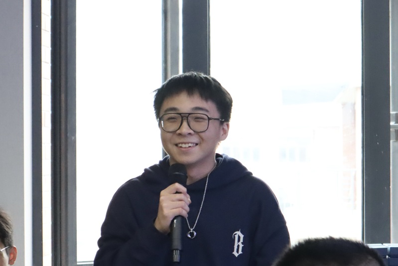 李杨宁同学做了宣讲中的经验与技巧分享。他将宣讲与朗诵进行比较,指出宣讲的最终目的是让大家产生情感共鸣,获取认可。宣讲应该具有更多的逻辑思考,同时也要做到“真情实感”与“氛围营造”。
