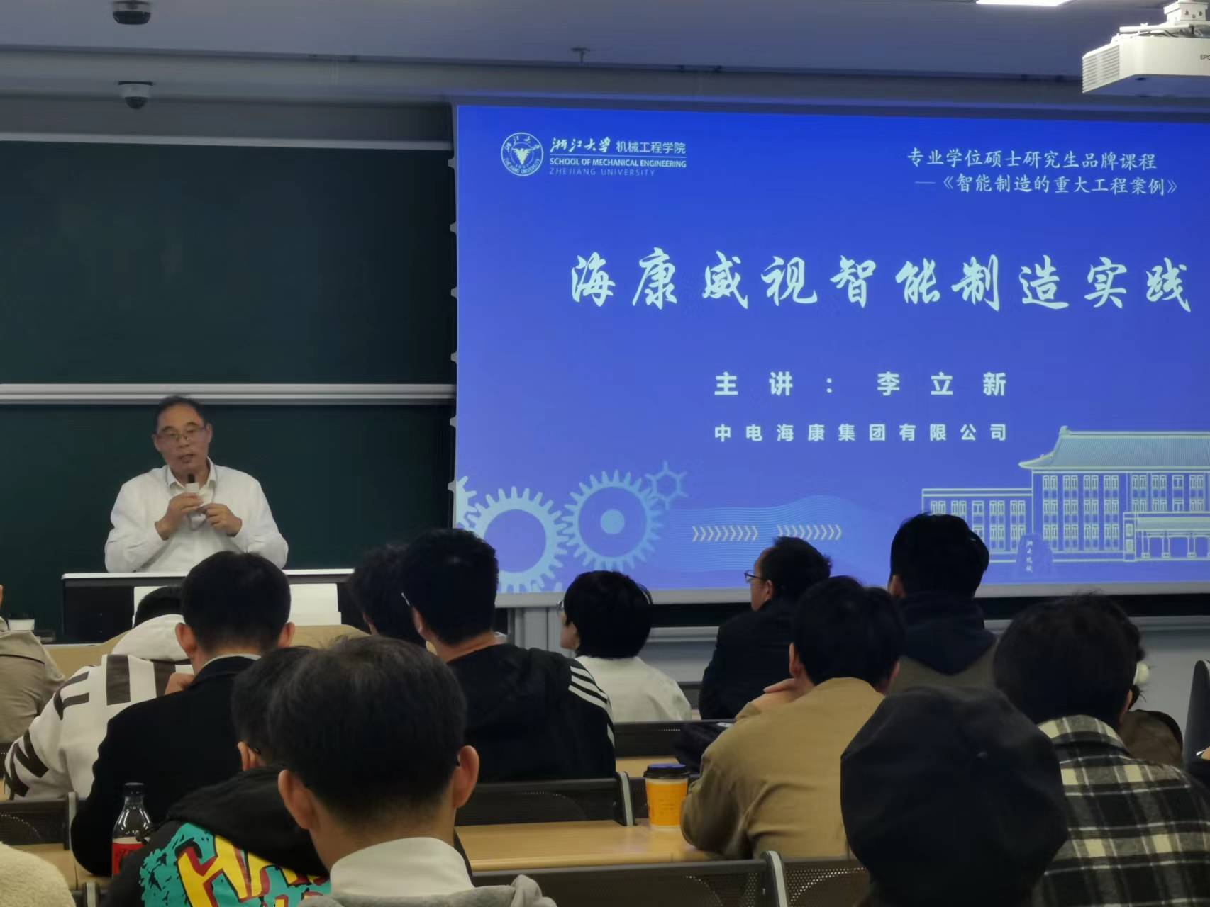 11月13日下午,浙江大学首批校外行业导师——李立新专家应邀为2022级机械大类硕士研究生讲授智能制造前沿课程《智能制造的重大工程案例》。本次开讲主题为:海康威视的智能制造实践。