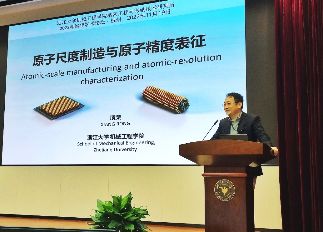 论坛围绕精密制造与微纳技术主题,安排了特邀报告、口头报告和墙报等内容。研究所新引进的求是特聘教授项荣为大家带来主题为“原子尺度制造与原子精度表征”的报告,他通过精彩的报告和现场展示的实物模型为大家揭示了原子尺度精密制造的突破和创新,并与现场青年学者分享了自己科研创新的思路与体会。