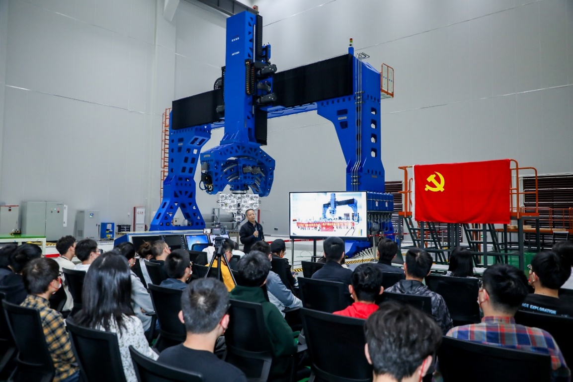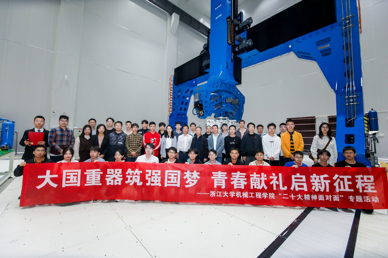 党的二十大报告指出,坚持创新在我国现代化建设全局中的核心地位,加快实施创新驱动发展战略,加快实现高水平科技自立自强。在机械工程学院航空制造工程研究所教授董辉跃教授和朱伟东教授带领下,师生们一同参观了展示大厅和生产车间。在鲜红的党旗下,在大型设备的环绕中,董辉跃教授带来了一场别开生面的沉浸式微党课,围绕飞机数字化装配与复合材料自动铺放技术、装备及应用,分享了其中的攻关故事。他表示:作为新时代的科技工作者,要坚持以“四个面向”为引领,聚焦以国产大飞机等大国重器为代表的高端装备国家战略需求,加强原创性、引领性科技攻关,打赢关键核心技术攻坚战,以更高的视野、更新的思路、更实的举措为加快创新型国家和世界科技强国建设贡献浙大力量,彰显浙大人担当。
