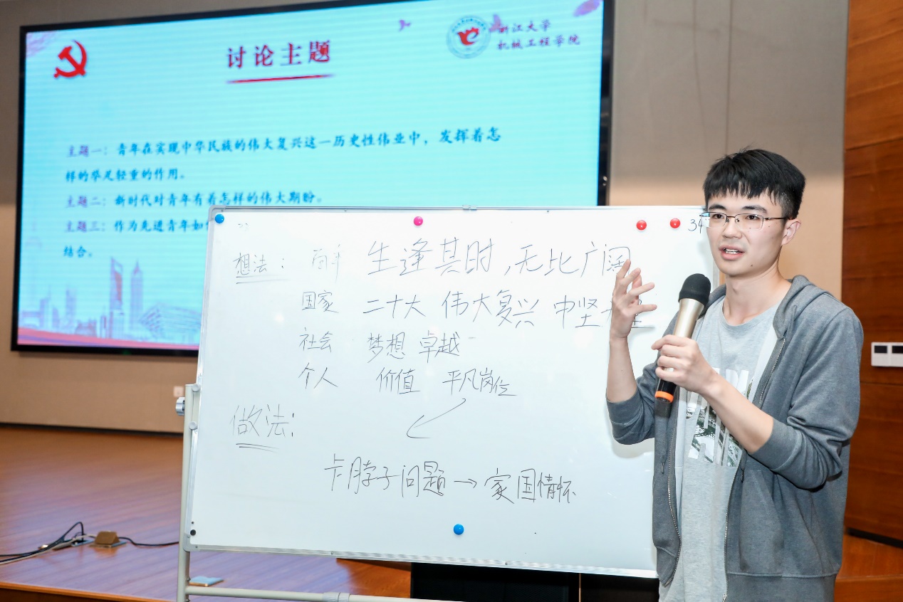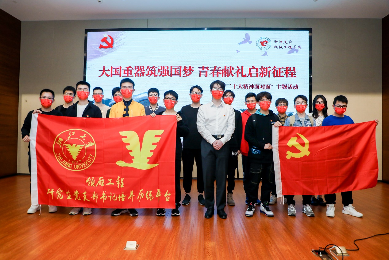 为深入学习贯彻党的二十大精神,强化学生党支部建设,将党支部建设与学科发展、国家科技进步深度融合,厚植科技报国情怀,开启青年奋斗新篇章,2022年11月10日,由浙江大学党委研究生工作部举办,机械工程学院承办的 “领雁工程”二十大精神面对面workshop专题活动在浙江大学航空制造高端装备研究中心开展。学校部门领导、机械学院部分教师和学生党员代表参与了本次活动。