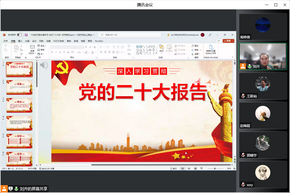 2022年11月24日,在副书记刘齐的主持下,制造博二党支部全体成员进行了主题党日学习活动,此次学习以传达学习党的二十大精神及新修订的《党章》为主题。