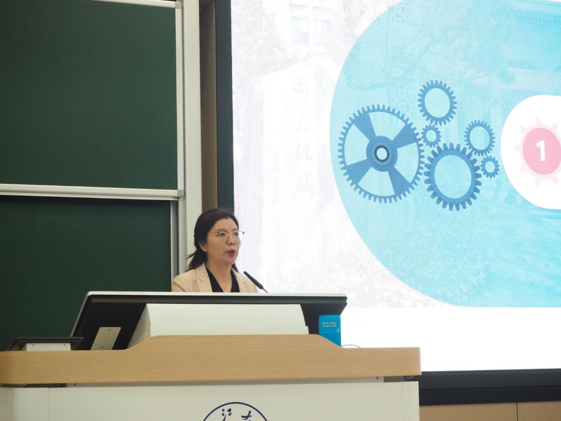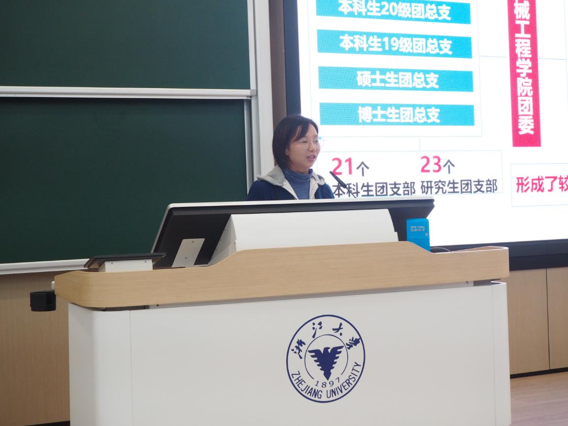 学院团委书记金娟霞老师介绍了学院团线工作,学院创新了思政教育形式,建立了马兰工作室,使得形式多样的党团活动入脑入心,并且学院团委还开展了丰富的志愿者活动、细致入微的就业服务工作等,经过不懈努力,学院团委取得了各项国家级、省级优秀荣誉。此外,金娟霞老师介绍了机械学院的历届优秀学生,并以此激励在座各位同学,以学长学姐们为榜样,积极向上、全面发展。