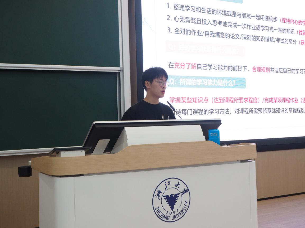 在随后的学长分享会环节,大会邀请到了两位2019级本科生。其中,孔伟杰同学为大家深入介绍了自己的本科生阶段的学习生活,学会合理规划自己的时间,找准属于自己的学习方法,从而获得良好的学习状态。林昭辉同学则详细地分享了自己的保研经验以及自己在本科生阶段所从事的学生工作。