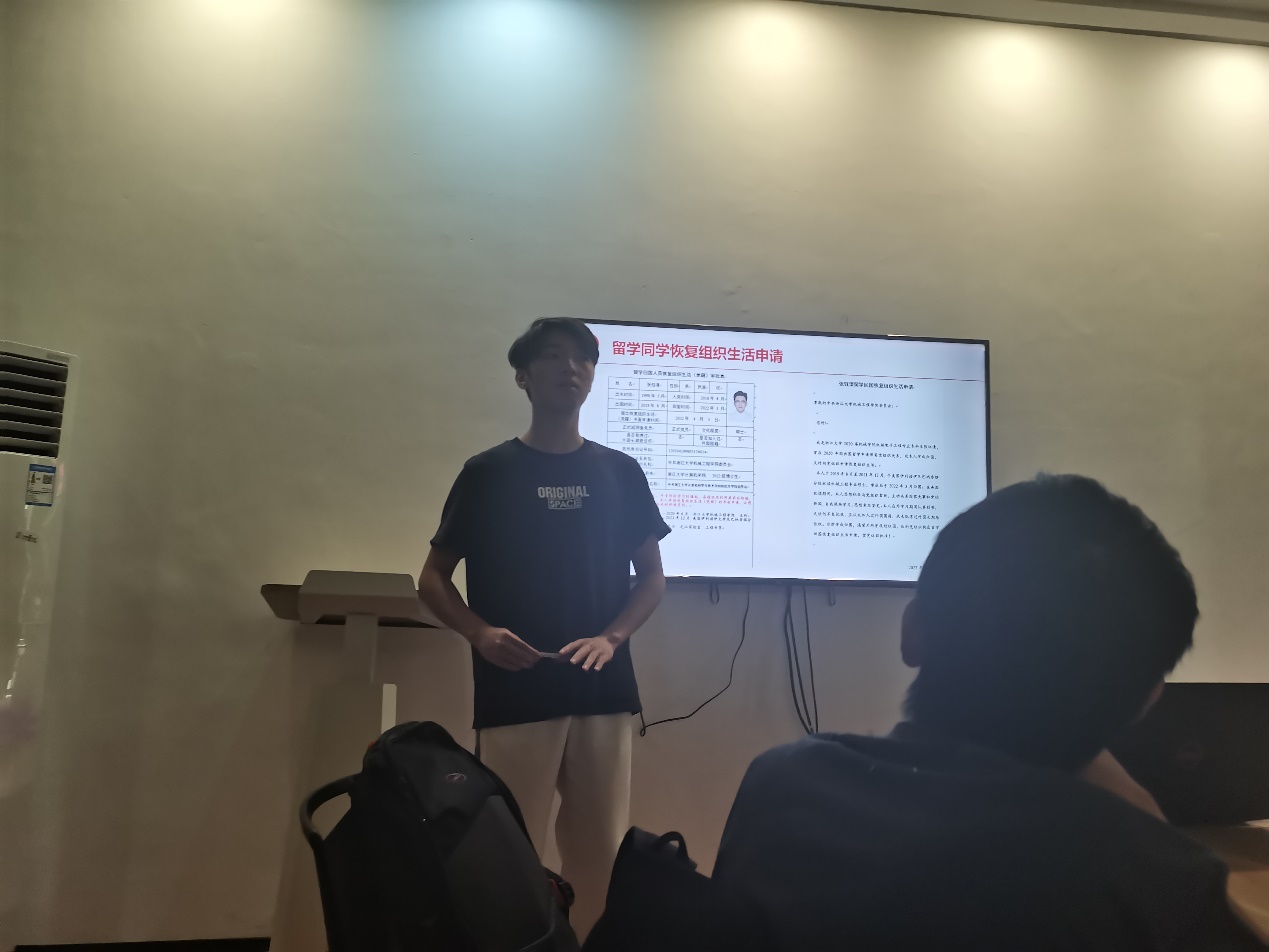 图注:党支部成员观看张钰清同学回国回复组织生活申请
