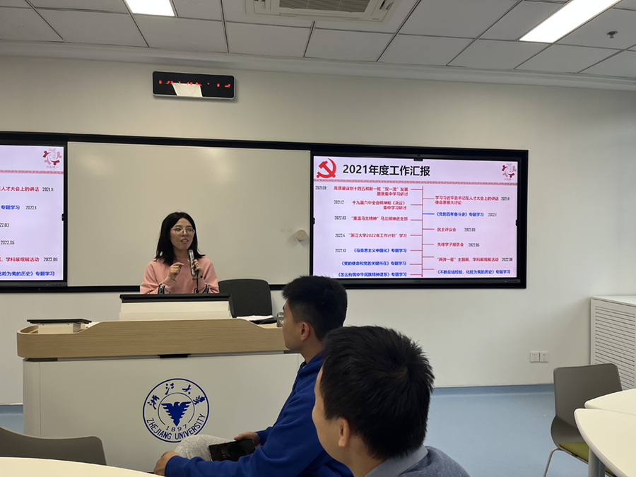 2022年10月14日星期五下午15:00,机制博一党支部于紫金港校区段永平教学楼1幢313室召开党员大会暨支部委员换届大会。出席本次支部委员换届大会的有支部副书记张梦茹同志、各支委以及各位党员同志。本次大会共有四项议程:1、支委进行“六个专题”党课宣讲;2、纪检委员主持第二轮浙江大学两委委员名单酝酿;3、支部书记代表支委向全体党员汇报一年工作情况,全体支委述职;4、支委班子换届选举。