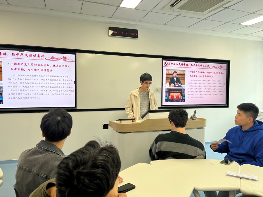 图注:支委进行党课宣讲。从左到右依次为时慧敏、牛成成、肖璇