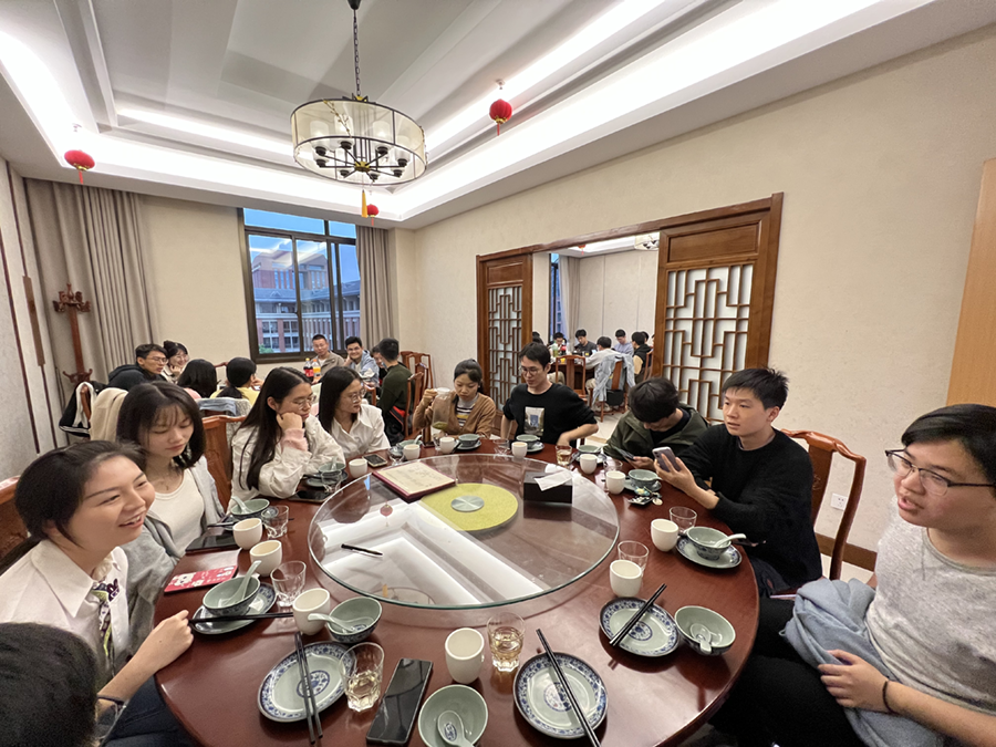 由于会议时间较长,支部决定暂停会议,先吃晚饭,再进行大会第四项议程。支部成员一同前往紫金港校区澄月餐厅三楼留学生食堂聚餐,相互交流这一学年的收获和进展,为进一步建设“STUDY”型五好支部做好准备。