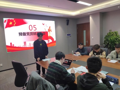 首先由刘金鑫和牟伦锐同志宣读入党志愿书,党支部委员会汇报发展对象的考察情况后所有正式党员进行投票,正式接纳刘金鑫和牟伦锐同志为预备党员。随后彭德尚同志宣读了转正申请书,正式党员投票后全票通过同意转为正式党员。