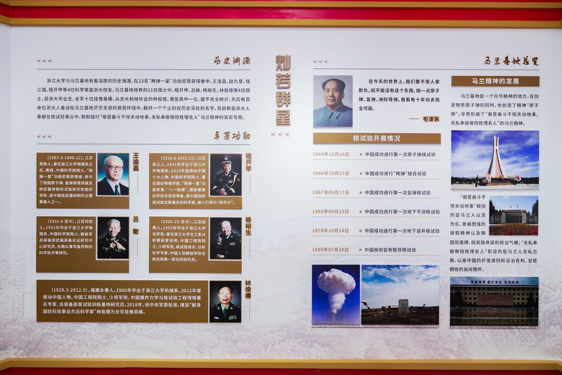 跨越万水千山阻隔,浓缩几代人奋斗历程。历时8个月,浙江大学马兰工作室着力打造“浙大师生自己的精神展厅”,全校师生又多了一处打卡必去的红色地标。马兰精神展厅位于浙江大学机械工程学院内,讲述了马兰基地的起源、一代代浙大马兰人物故事、全军挂像英模林俊德院士的卓越贡献与感人事迹以及马兰工作室的初心与成果。