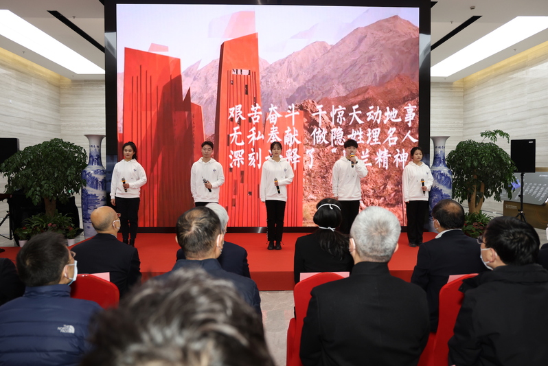 丹心照大漠,血汗写艰难。马兰工作室的同学们用慷慨激昂的诗朗诵,将三代浙大马兰人的事迹呈现在现场师生们面前。一首《马兰谣》,讲述了王淦昌院士隐姓埋名、无私奉献,程开甲院士亲临爆心、以身犯险和林俊德院士以智许国、至死攻坚的精神。
