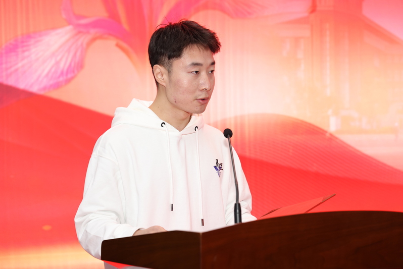 马兰精神宣讲团团长赵金栋同学作为学生代表发言。他表示,在浙大多年的求学时光中,正是在马兰精神的感召下,让他始终保持冲锋在前的势头。也是在一次次宣讲马兰精神的过程中,坚定了他爱党报国的志向。
