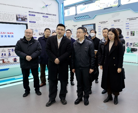 会议开始前,温岭市人民政府一行在项淑芳等的陪同下参观了浙江大学机械工程学院新大楼开物苑及流体动力与机电系统国家重点实验室展厅。项淑芳详细介绍了组织架构、学科方向、人才团队建设、科技成果转化等学院基本情况,马厉财表示希望双方今后能在地方产学研合作等方面深入交流。