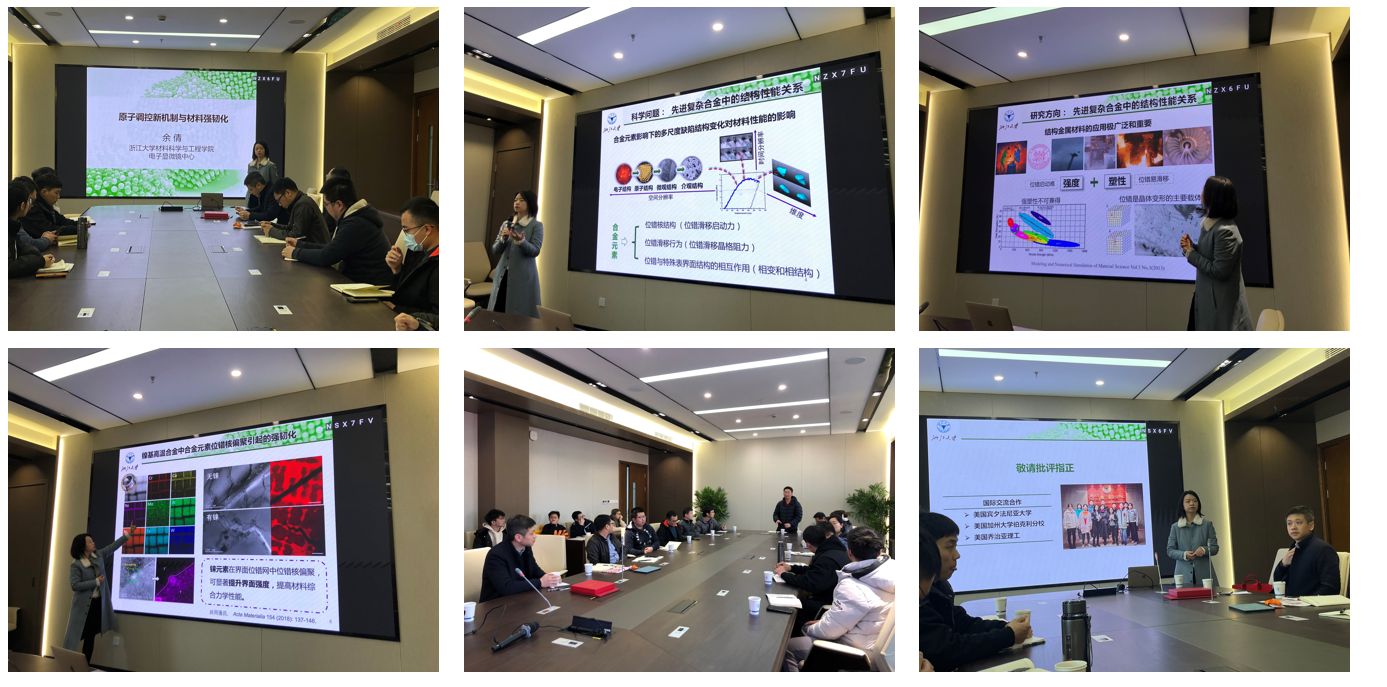 浙江大学材料科学与工程学院长聘教授余倩教授应邀在论坛上作了《原子调控缺陷行为与材料力学性能优化》的精彩报告。余倩教授详细介绍了实现高强度和高塑性是结构金属材料研发的目标,而缺陷的行为在确定力学性能方面起到关键的作用。作为一种最重要的缺陷,位错的启动和滑移、反应直接与材料的强度、延展性相关联。余倩教授研究团队借助于原位以及多尺度的电镜表征技术,解析了多种通过位错调控实现材料强韧化的机制。系统研究了钵合金,镁合金,钢以及高熵合金中合金成分及分布对缺陷行为的影响,并定量表征了其对力学性能的贡献。余倩教授研究团队的研究结果一方面深入了对几种重要合金体系结构性能关联性的影响,另一方面对合金化相关的材料改性机理更新了认识。余倩教授的精彩报告激发了在场青年教师的热烈讨论和深入思考,大家围绕微纳制造、深海工程、3D打印等领域的前沿学术问题开展了广泛讨论,交流现场热烈而融洽。