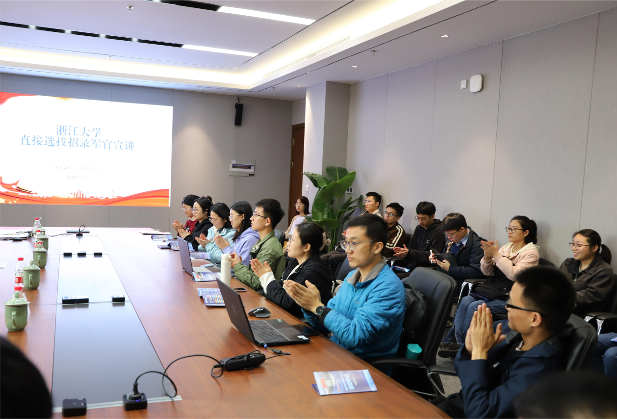 部队各位领导、浙江大学机械工程学院党委书记项淑芳、浙江大学机械工程学院党委副书记俞磊、团委书记金娟霞、团委副书记刘炳瑞以及机械学院部分博士研究生参加了本次宣讲会。部队干事主持了本次宣讲会。