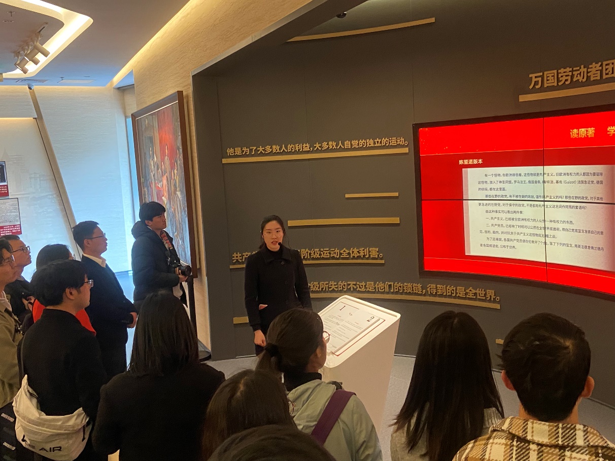 望道展示馆里,从共产党宣言到党的思想发展历程,师生们一步步走进那个思想涌现的时代:1919年,陈望道从日本留学回到家乡,并在柴屋中首译了《共产党宣言》中译本。后来,柴屋焚于火中,而他翻译的经典著作,却为中国革命“盗取天火”,照亮了革命者的道路,为中国共产党的创立奠定了重要的思想理论基础。