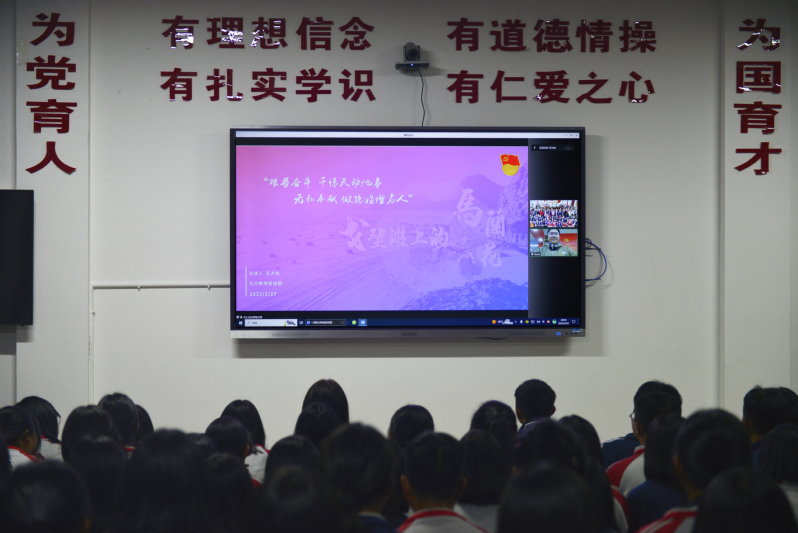 2023年3月29日晚,浙江大学马兰工作室马兰精神宣讲团成员石大杭为景东职业高级中学高一(1)班、高一(2)班的同学们带来了一场名为“戈壁滩上的马兰花”的理想信念主题课程,作为 “爱在滇西·东课西送”第四期精品课程。