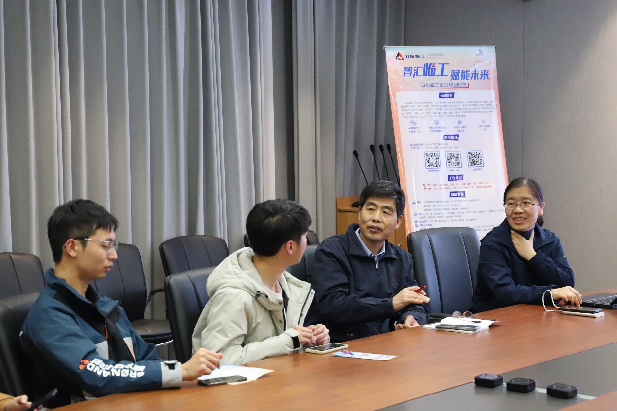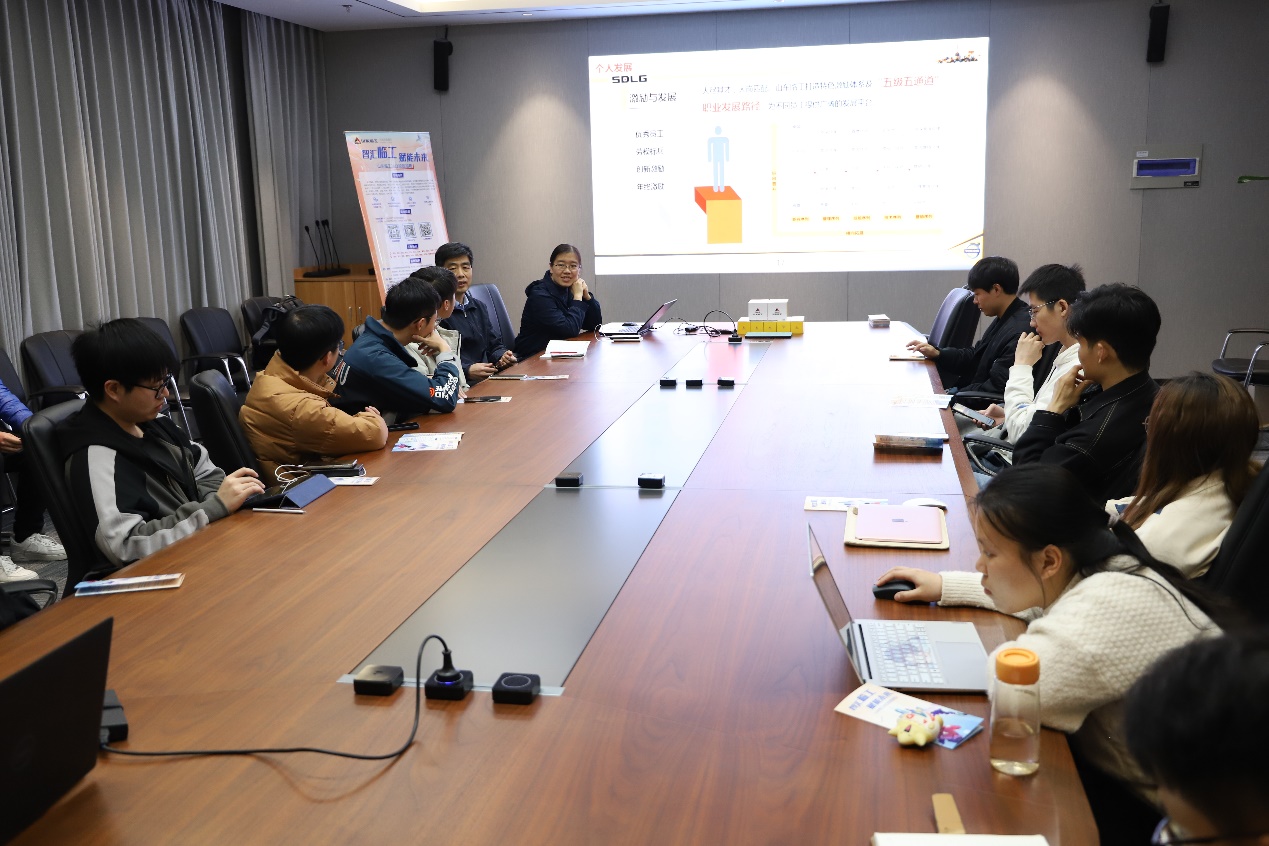 对于员工的培养,颜经理从薪资待遇和未来个人发展两方面向同学们耐心讲解:“山东临工在薪酬福利方面,实行区域领先薪酬策略,根据马斯洛需求模型,在原有国企福利待遇的基础上,建立了完善的福利保障体系。”其中,颜经理着重强调了社保和公积金补贴、股权激励以及不同工作地点的人才政策。同时,山东临工还增加了各种创新激励政策来鼓励员工技术创新。经过颜经理的讲解,同学们对这样包容开放、鼓励创新的公司氛围充满期盼。