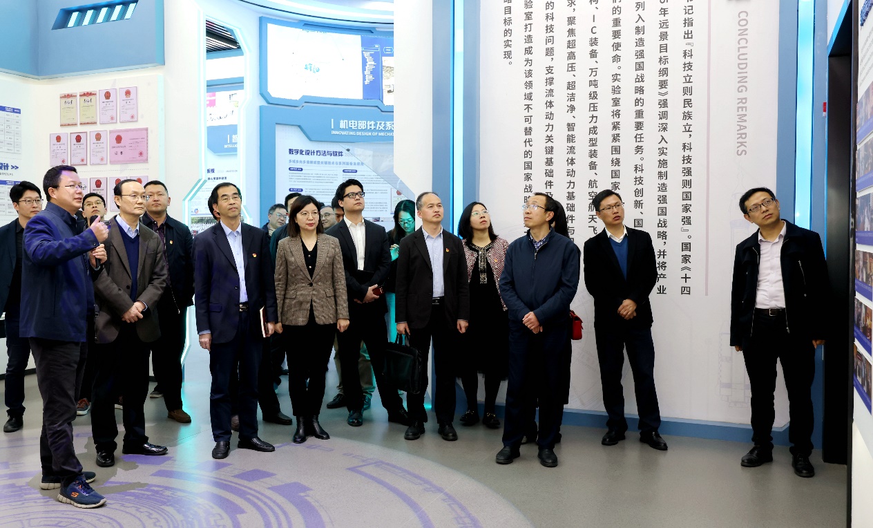 座谈开始前,项淑芳、居冰峰等陪同来宾一起参观了浙江大学流体动力与机电系统国家重点实验室展厅及实验车间、马兰精神展厅。学院党委副书记俞磊、副院长杨赓,国家重点实验室副主任贺永等陪同参观并作学院科研和思政工作情况介绍。