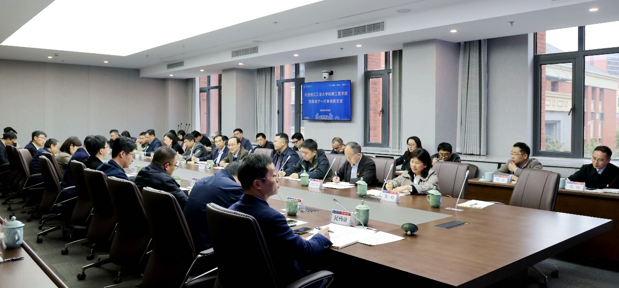 项淑芳、居冰峰代表学院对浙江工业大学机械工程学院一行的到来表示欢迎,指出浙工大在党建思政、地方合作等工作方面十分有特色,希望未来能携手并进,共同为建设制造强国、制造强省贡献力量。