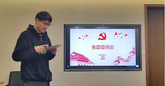 大会第一项是关于张臣臣同志转正讨论,张臣臣同志于2023年3月份满预备期一年。会议期间由张臣臣同志宣读转正申请书以及对自己在转正期间的表现、缺点等发表感悟,并由本支部成员曾然以及郭鹏宇同志作为入党介绍人宣读入党介绍人意见,以及与会同志的积极讨论,入校后其他党员同志与张臣臣同志的谈话情况汇报,张臣臣同志对于其自身存在问题以及其他党员同志对其建议表态,最后由副书记宣布张臣臣同志预备期满,顺利转正。