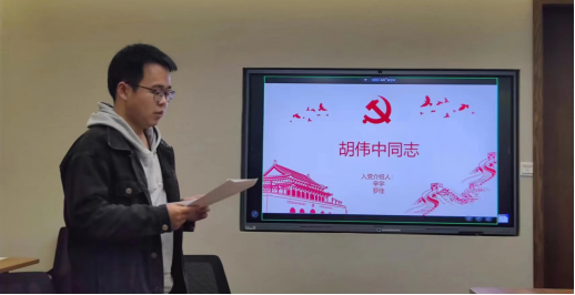 大会第三项是关于胡伟中同志转正讨论,吴凤楠同志于2023年3月份满预备期一年。会议期间由胡伟中同志宣读转正申请书以及对自己在转正期间的表现、缺点等发表感悟,并由本支部成员辛宇以及罗佳同志宣读入党介绍人意见,以及与会同志的积极讨论,入校后其他党员同志与胡伟中同志的谈话情况汇报,胡伟中同志对于其自身存在问题以及其他党员同志对其建议表态,最后由副书记宣布胡伟中同志以全票通过,顺利转正。