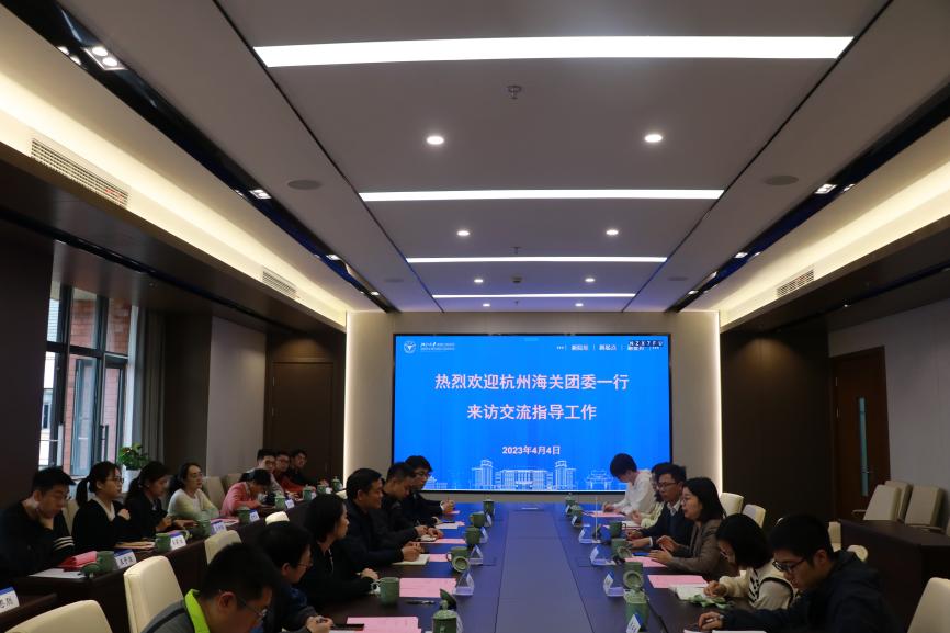 2023年4月4日,杭州海关团委徐晖书记一行23人来访我院交流,党委书记项淑芳、副书记俞磊及团委老师等参加座谈,会议由学院党委副书记俞磊主持。