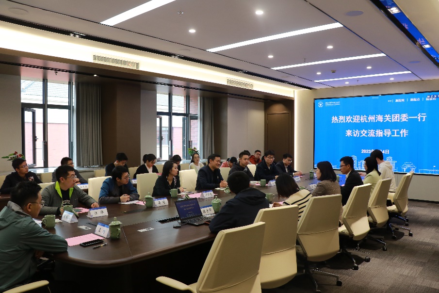 2023年4月4日,杭州海关团委徐晖书记一行23人来访我院交流,党委书记项淑芳、副书记俞磊及团委老师等参加座谈,会议由学院党委副书记俞磊主持。